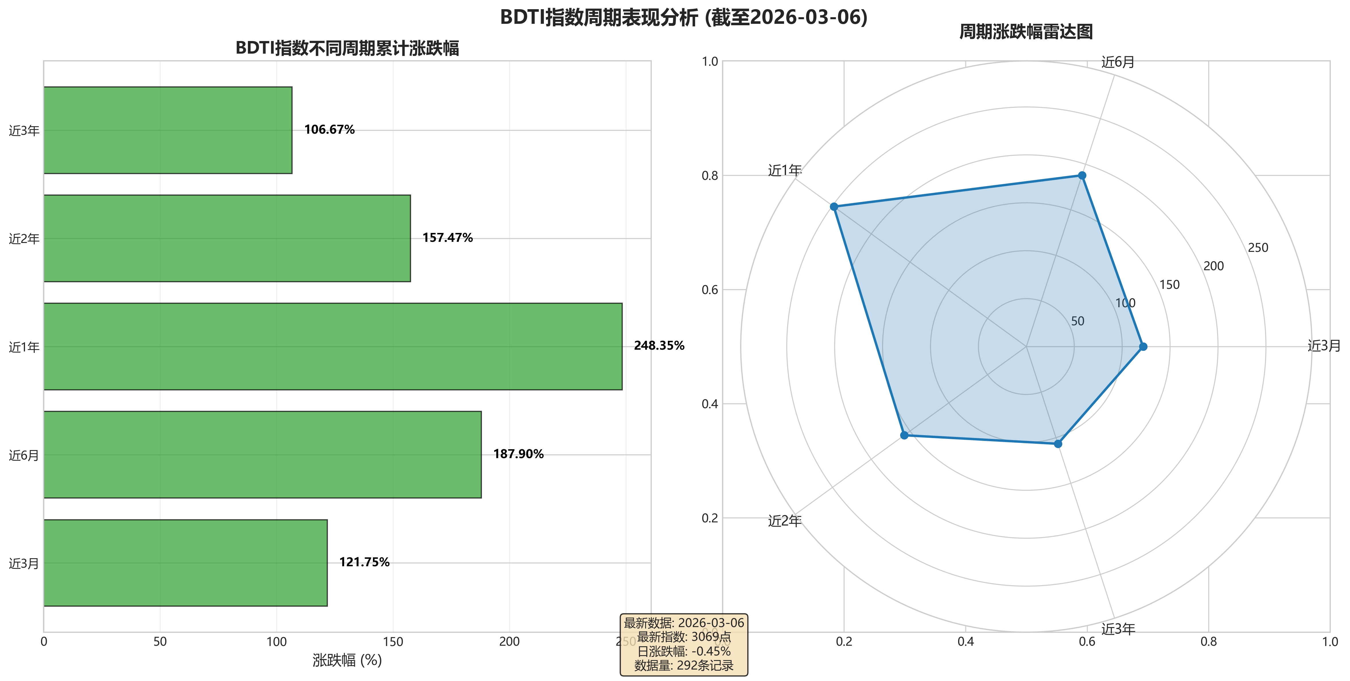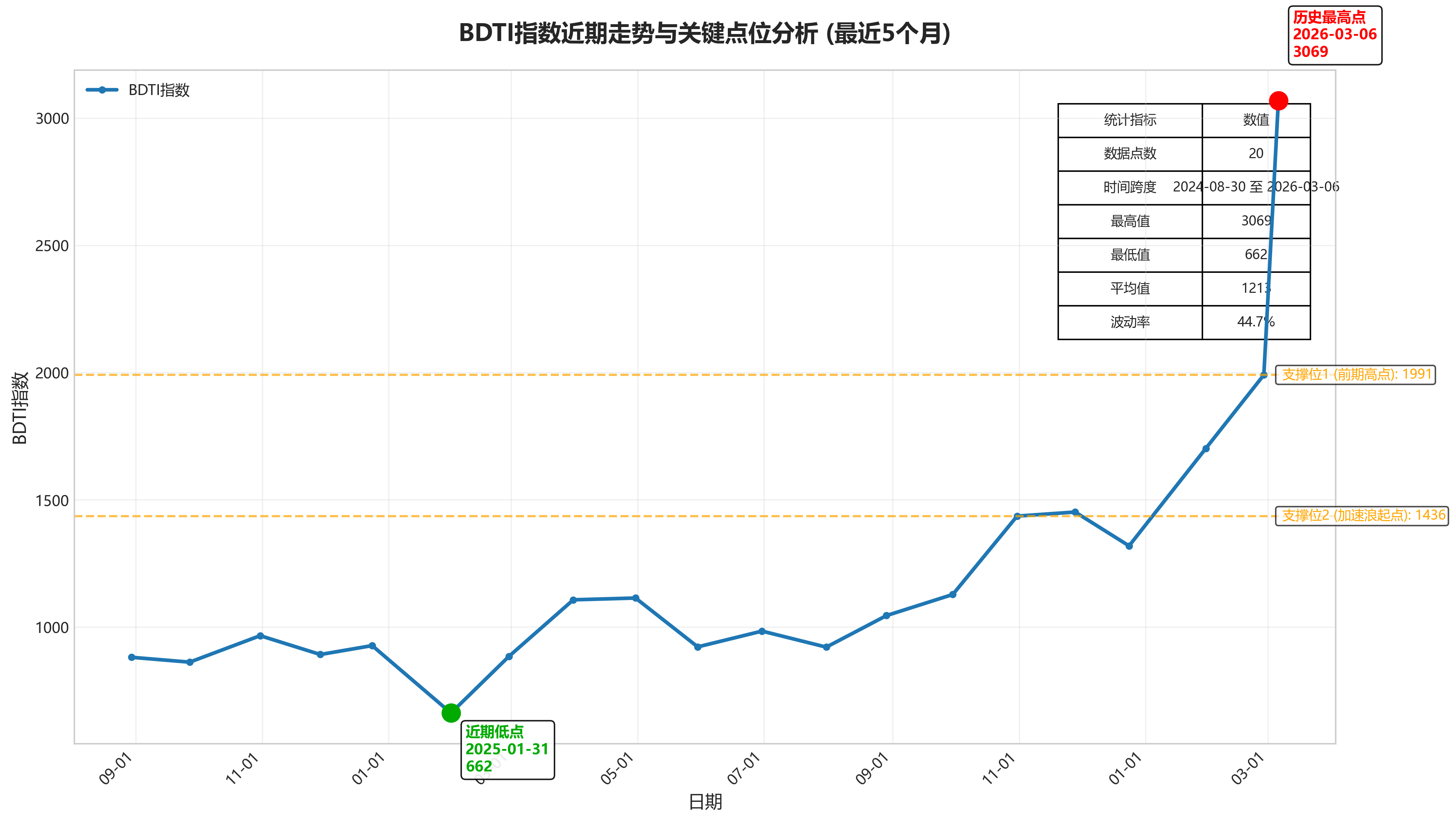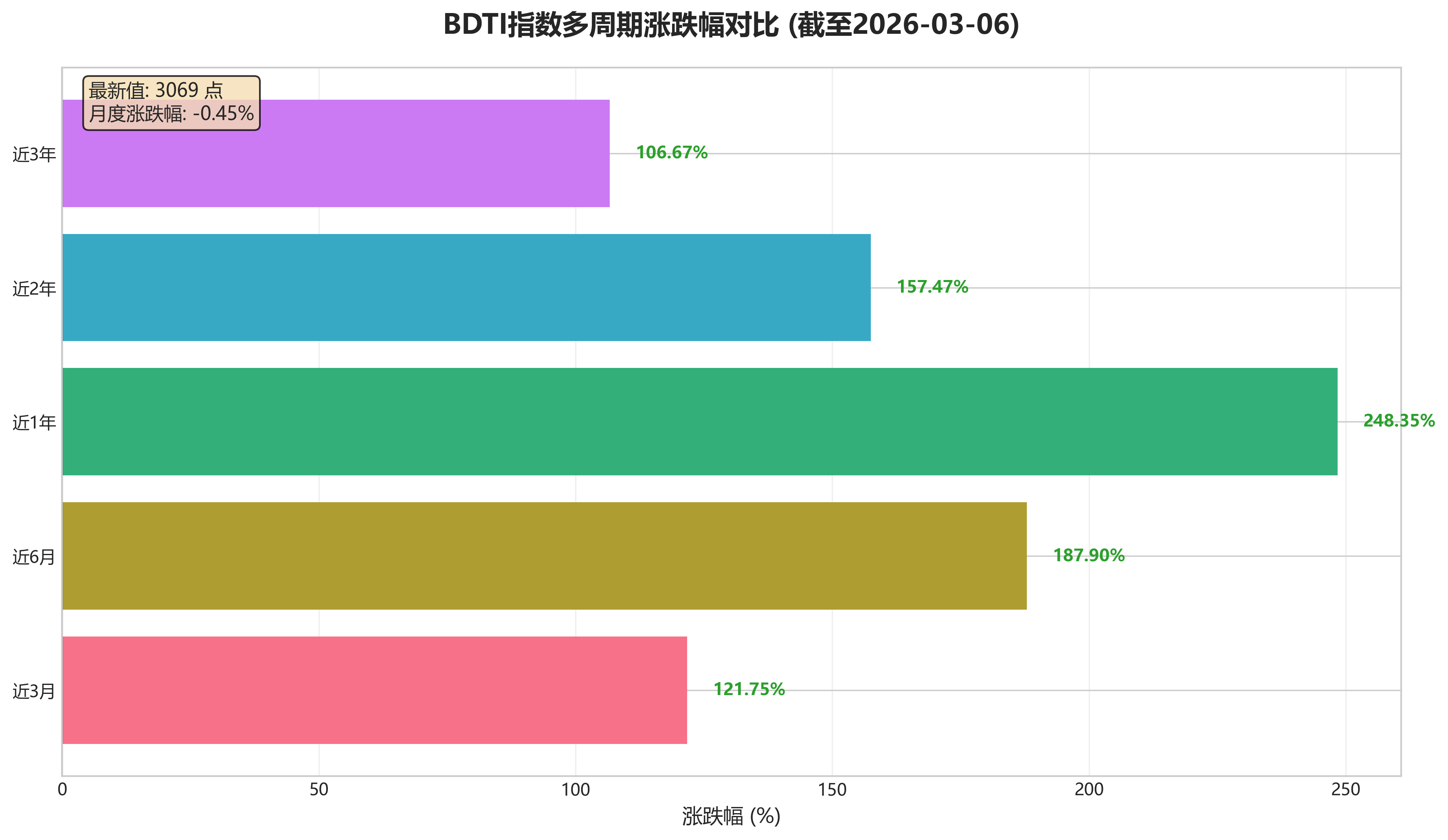 - 最新点位:截至 2026年3月6日,BDTI指数报收于 3069 点。
