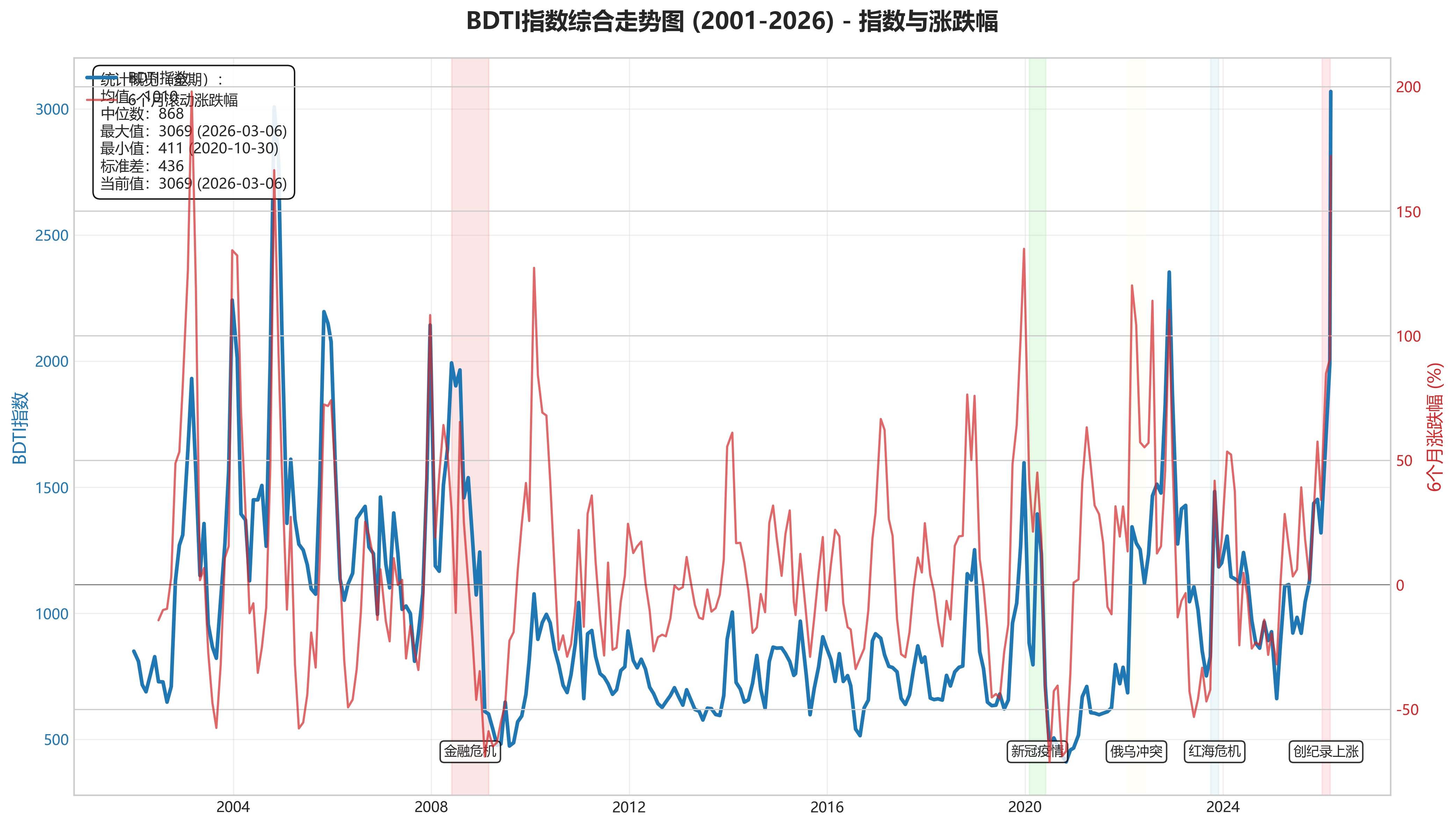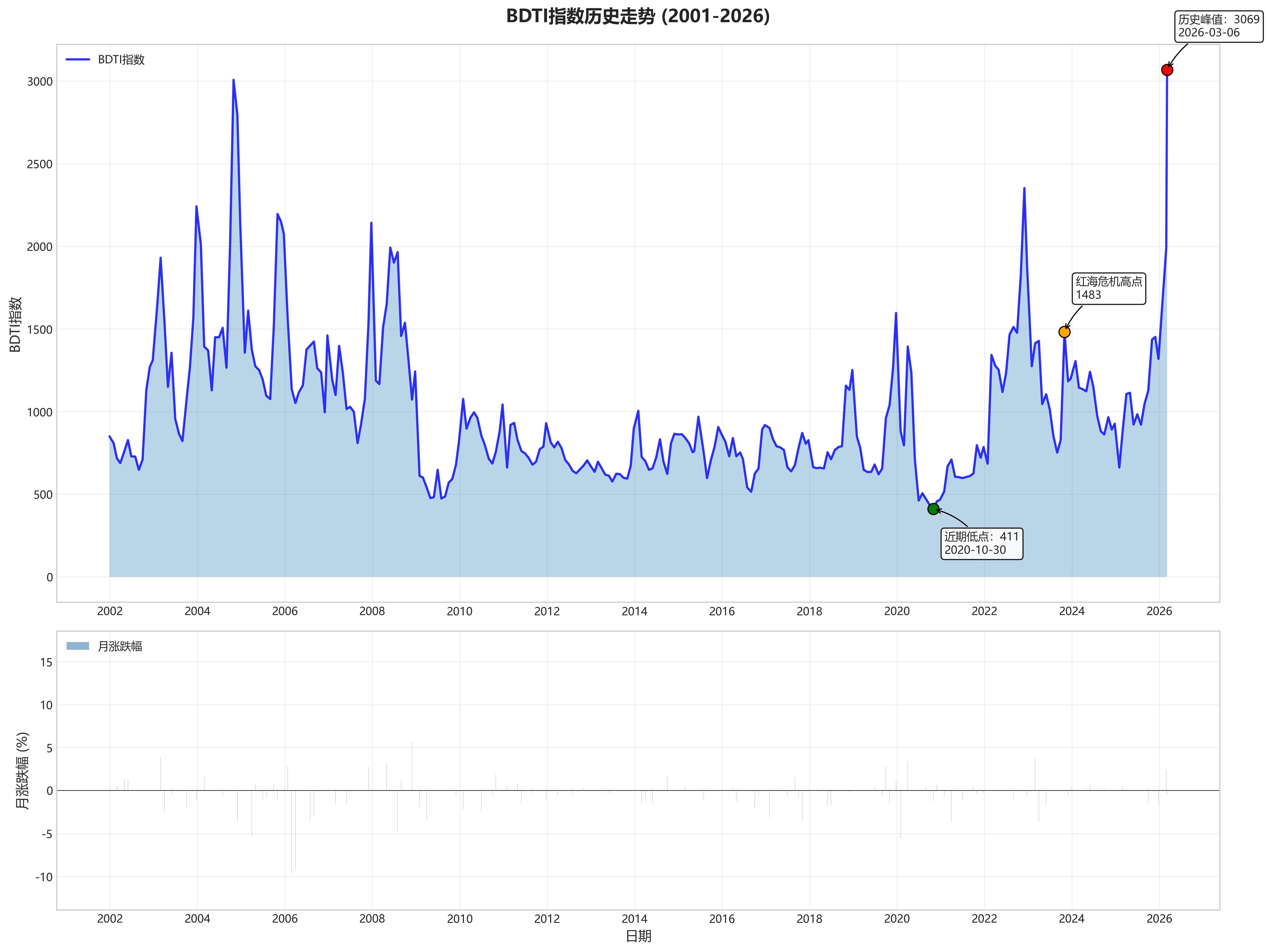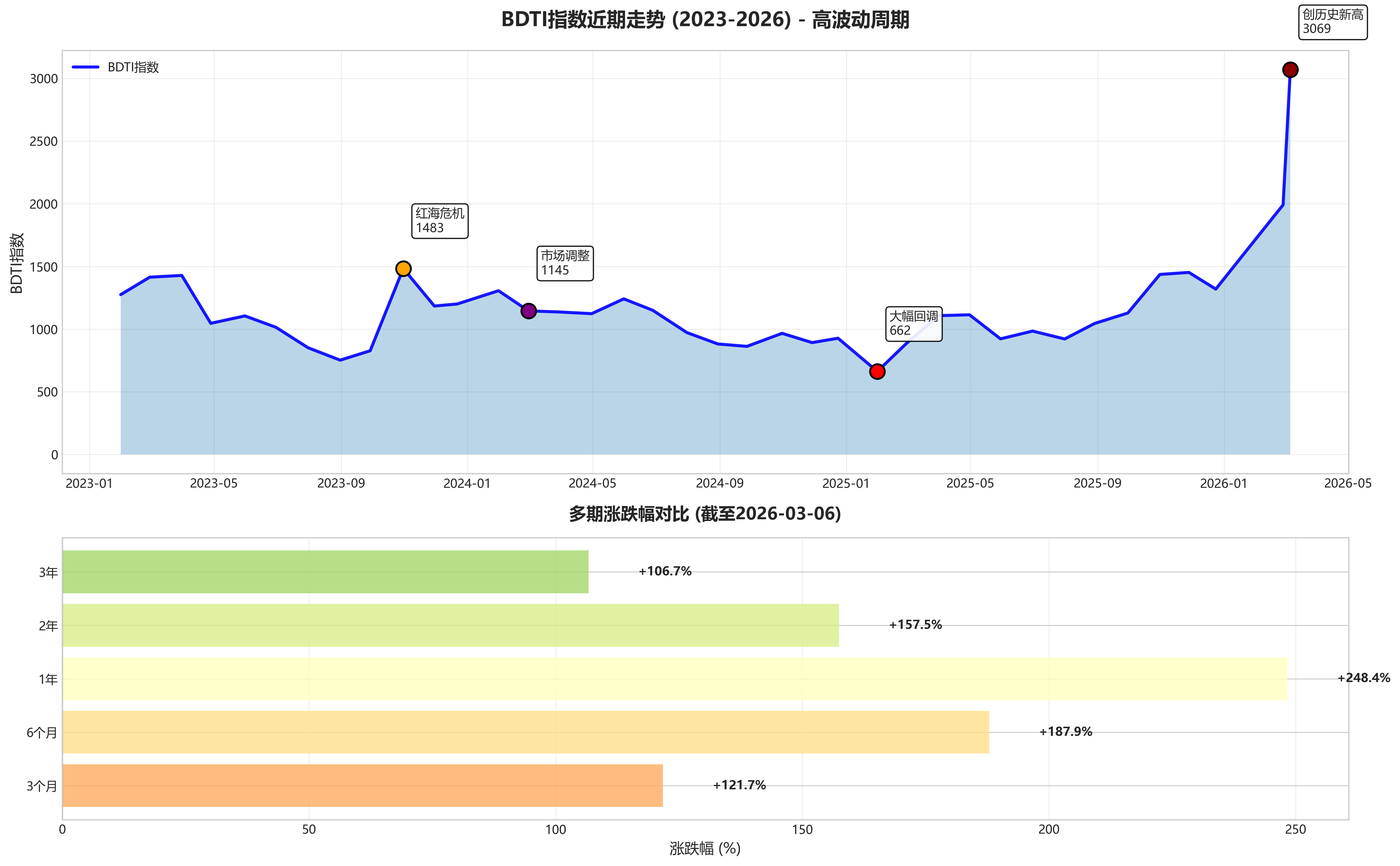 - 最新点位:截至 2026年3月6日,BDTI指数报收于 3069 点。