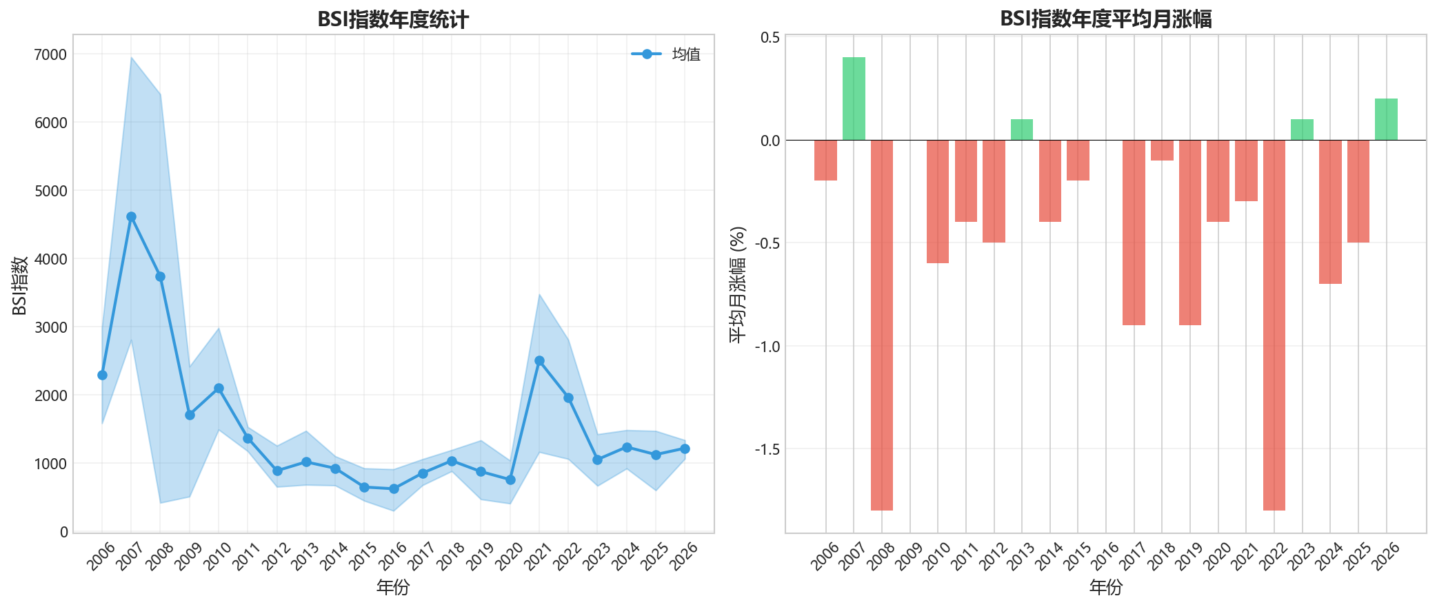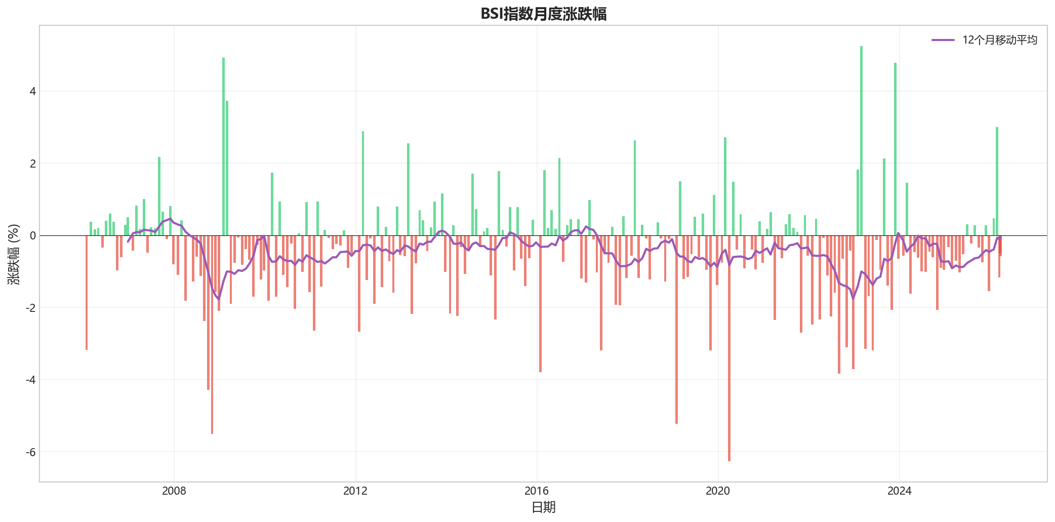 周期性特征明显:BSI指数波动剧烈,投资风险较高。历史数据显示指数单月跌幅超过50%的情况并不罕见。