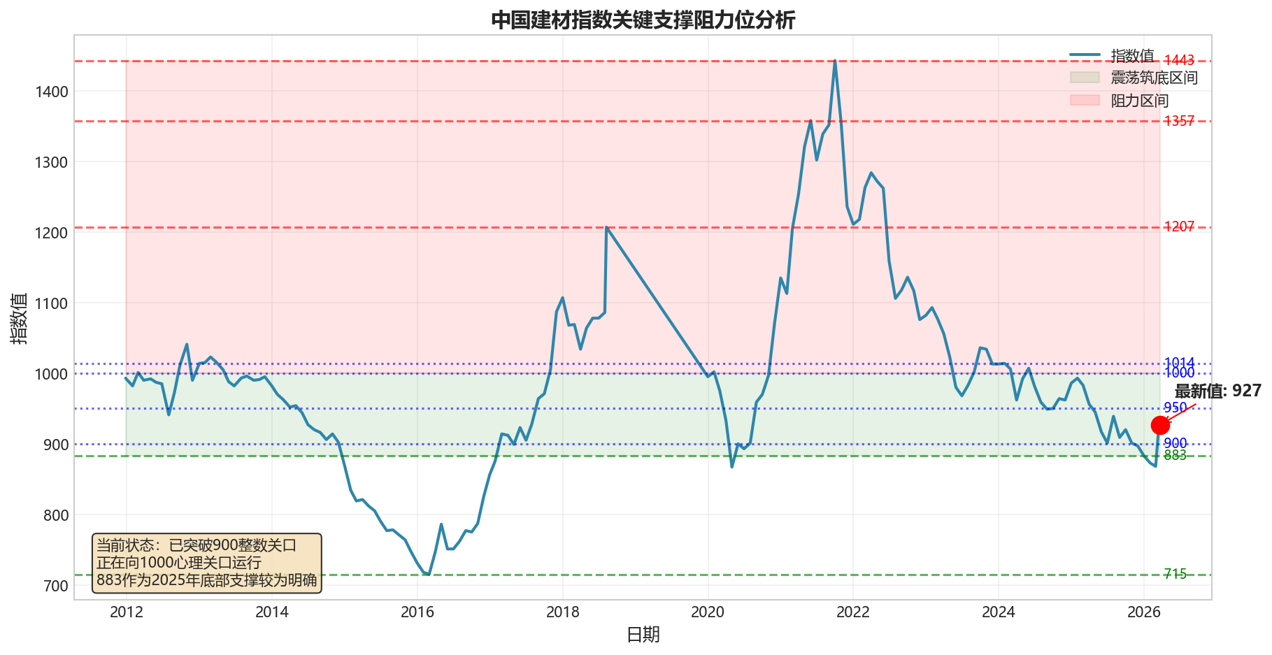 | 中期趋势 | 震荡筑底 | 2025年底部883形成有效支撑 |