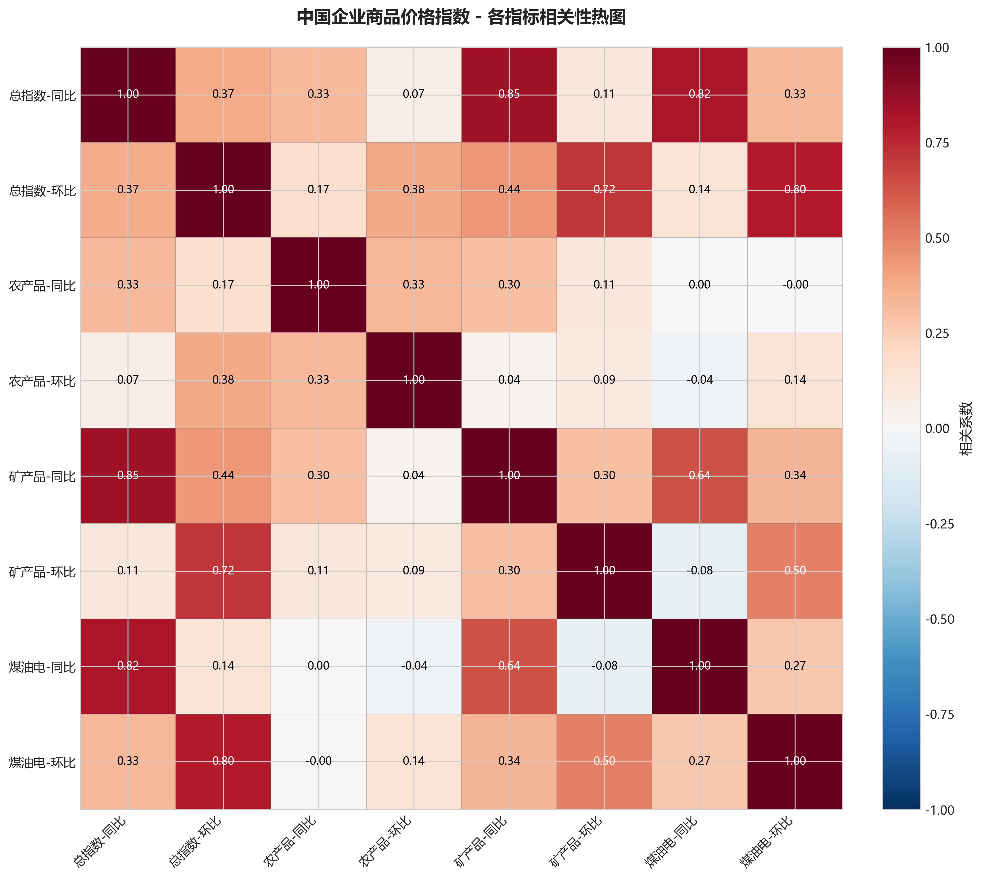 - 煤油电与矿产品:两者走势高度关联,周期性极强。它们的同比和环比大涨大跌通常同步发生,主要受全球大宗商品价格周期、国内产能政策(如供给侧改革)和宏观经济需求驱动。它们是总指数大起大落的主要推手。