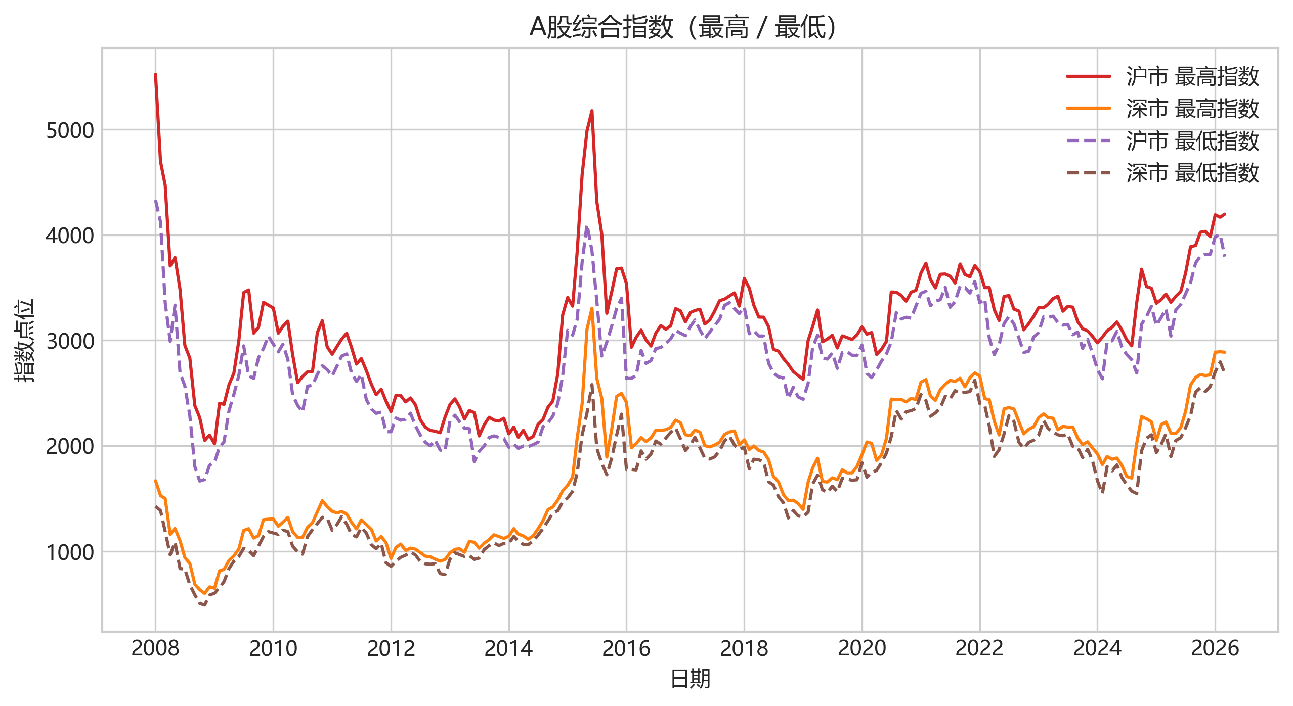 - 长期趋势(2008‑2026) - 关键节点(金融危机 2008、A‑股牛市 2014‑2015、疫情 2020、政策刺激 2021‑2022) |
