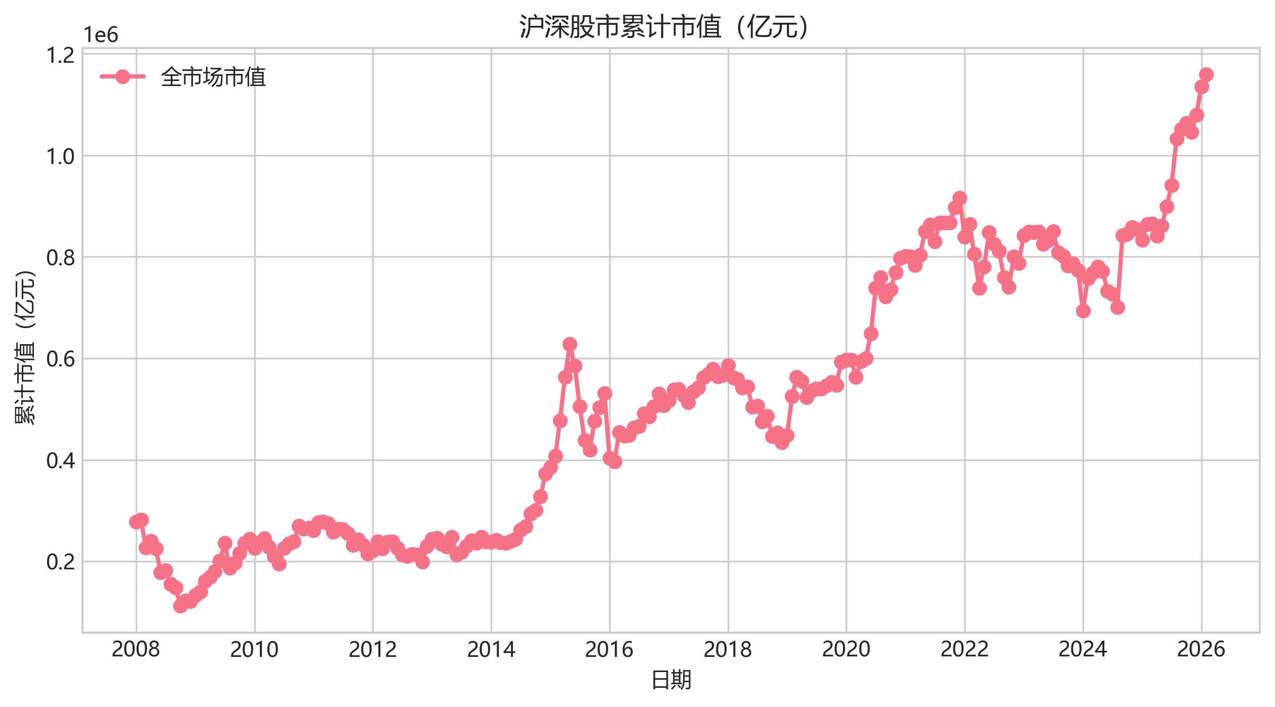 | 宏观经济关联 | 市值与 GDP、居民财富、外资流入等宏观变量高度相关,可用于宏观研判。 |