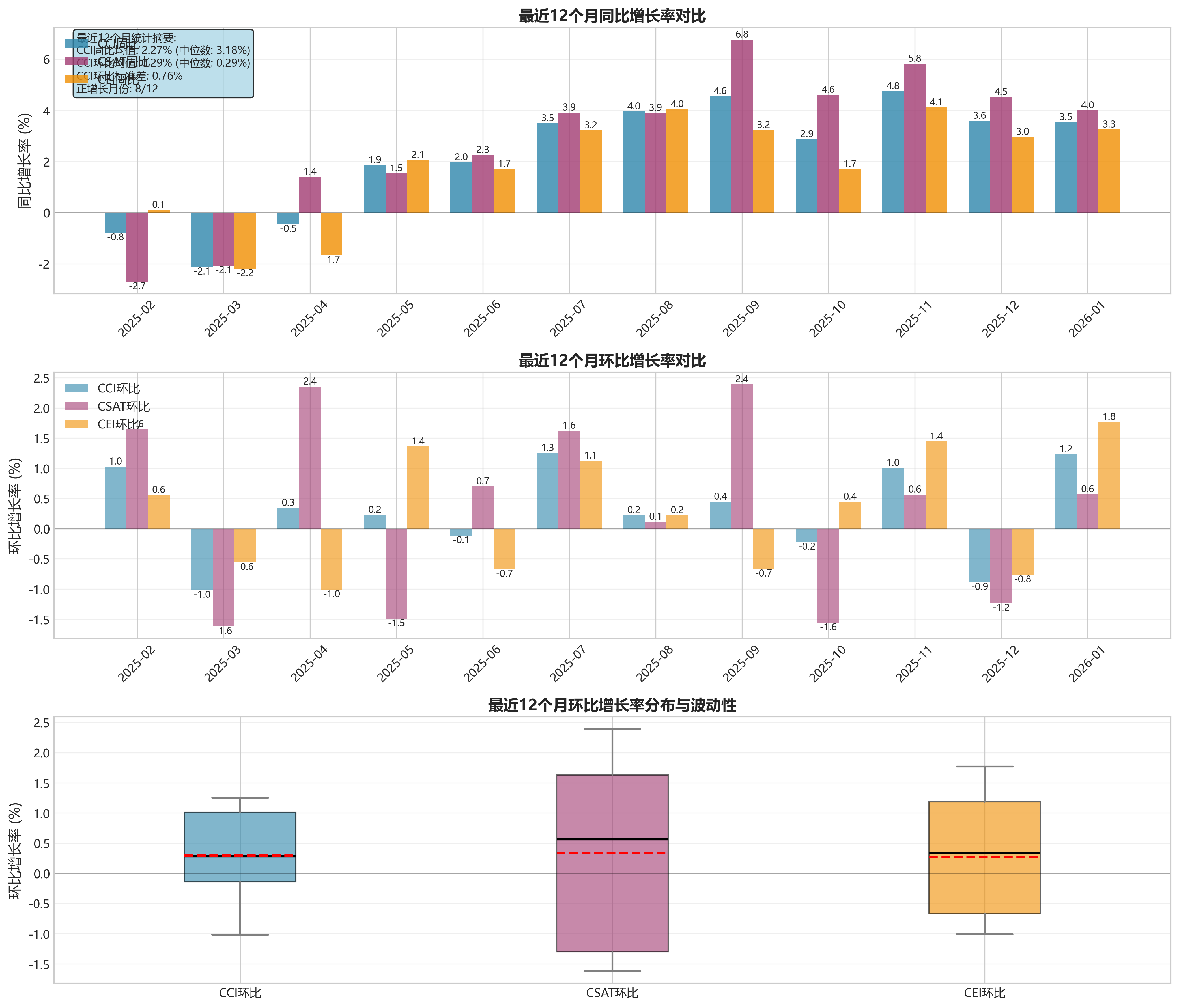 - 环比增长(本月比上月):近期波动很小,大部分月份环比变化在±1%以内,显示信心状态趋于稳定,但缺乏强劲的回升动力。